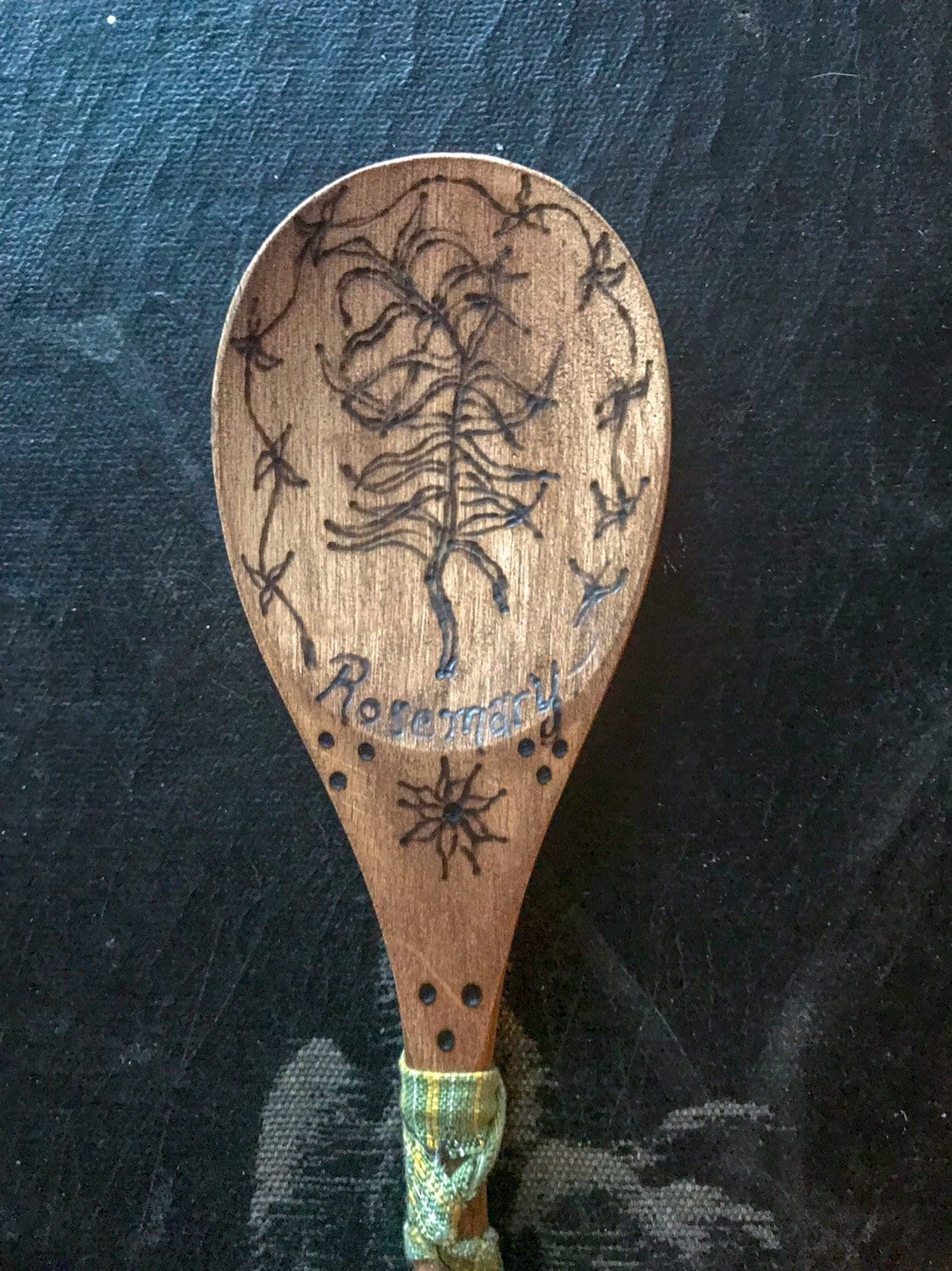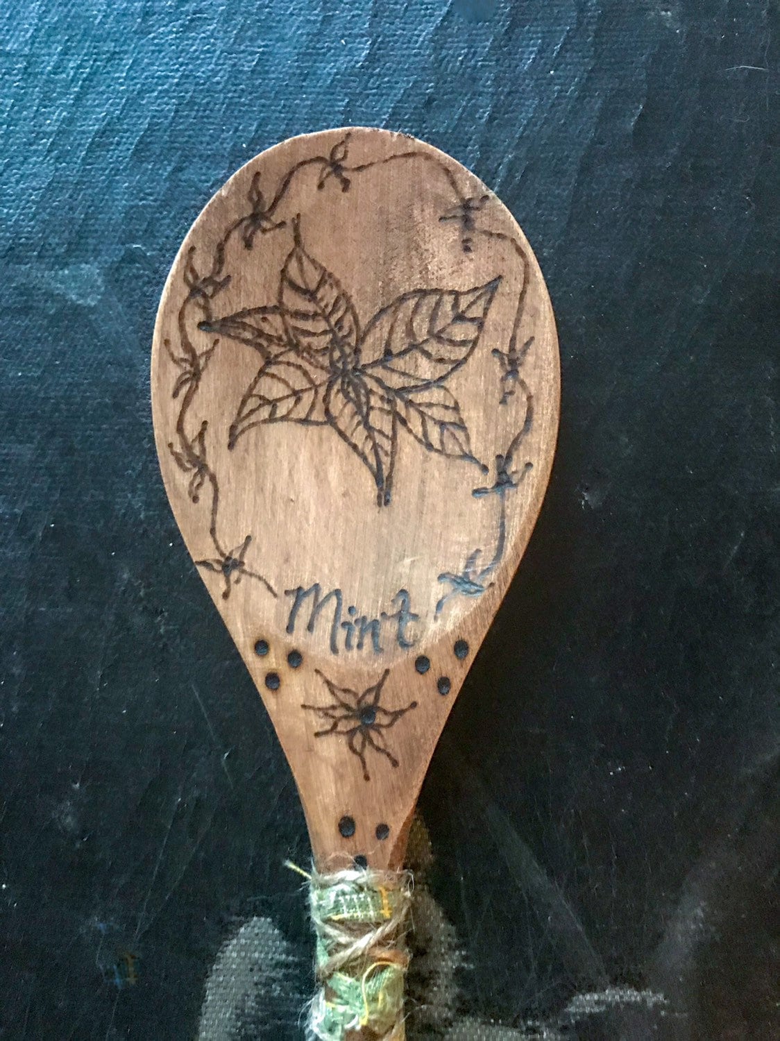 Perfect for primitive and rustic kitchens these large 14 inch spoons feature herbs I have drawn using pyrography. Each features a drawing of the herbs and the name with some decorative vine work.